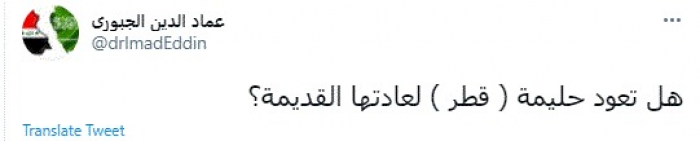 وقال في تغريدة عبر "تويتر" رصدها "المشهد العربي": "هل تعود حليمة (قطر) لعادتها القديمة؟".