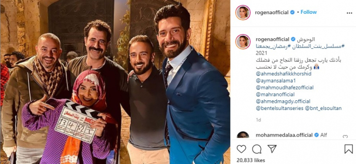 وظهر بالصورة التي طرحتها روجينا، كل من المخرج أحمد شفيق ومحمود حافظ وأحمد مجدي ومحمد مهران.