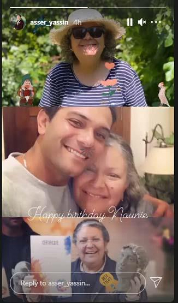 آسر ياسين يحتفل بعيد ميلاد والدته