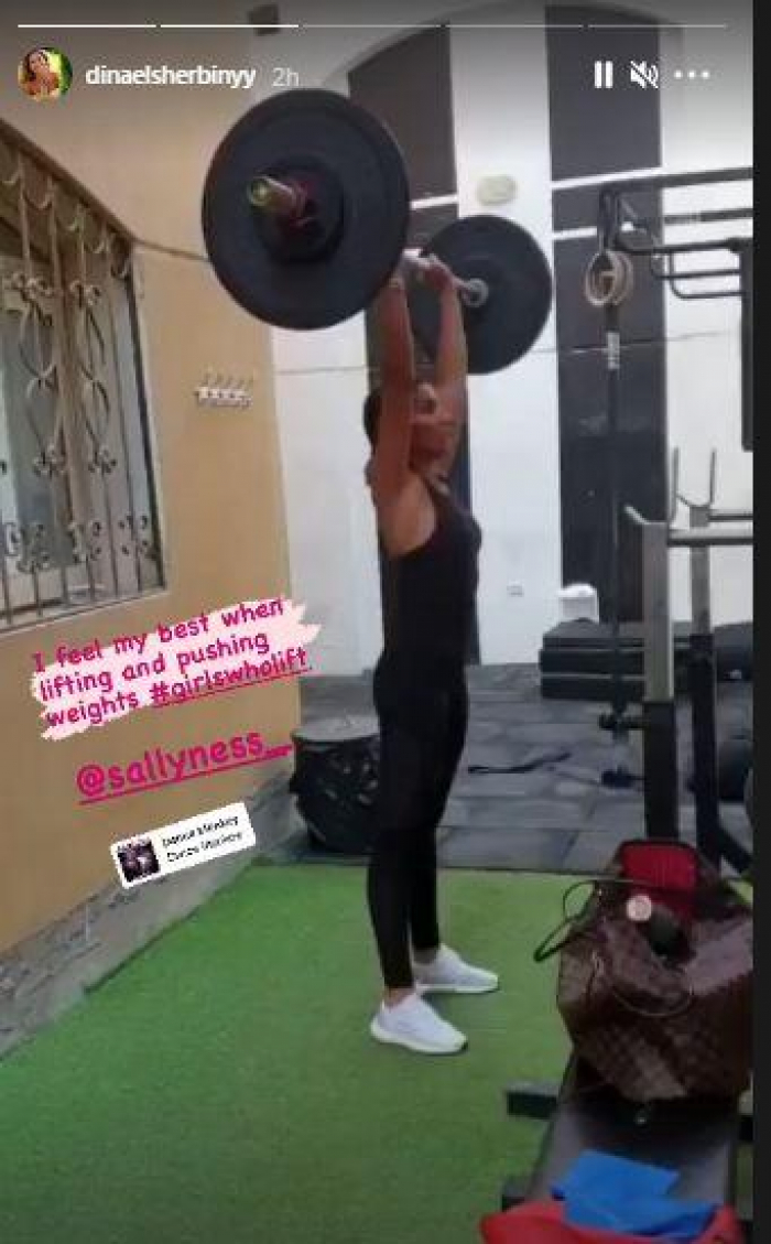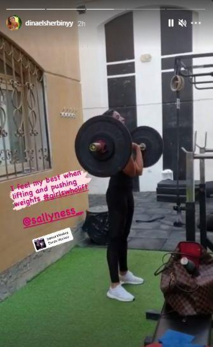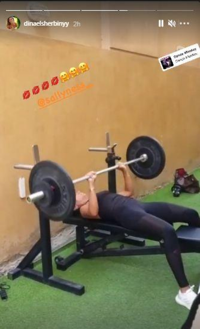 وظهرت "دينا"، في الفيديو وهي تمارس رياضة رفع الأثقال مستعرضة لياقتها البدنية، بالإضافة إلى عدد من التمارين الأخرى.