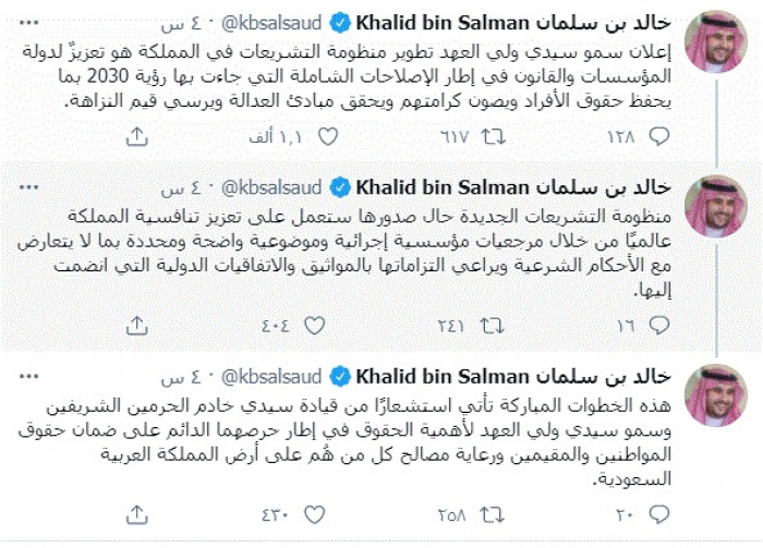 خالد بن سلمان يُعلق على قرار ولي العهد السعودي بتطوير منظومة التشريعات