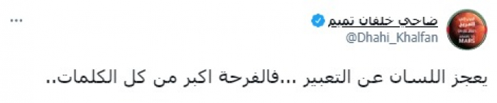 وقال في تغريدة على حسابه بموقع التدوين المصغر تويتر، اليوم إنه: "يعجز اللسان عن التعبير... فالفرحة أكبر من كل الكلمات".