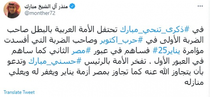 منذر آل الشيخ يُعلق على ذكرى تنحي مبارك