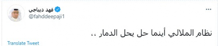 وقال في تغريدة عبر "تويتر" رصدها "المشهد العربي": "نظام الملالي أينما حل يحل الدمار".