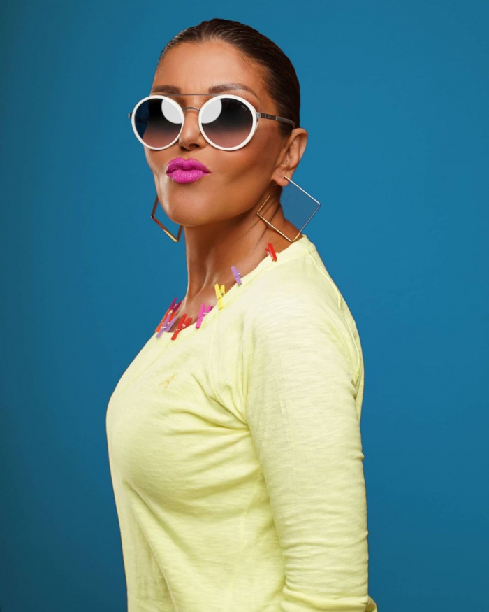 ظهرت النجمة المغربية سميرة سعيد، فى إطلالة مميزة خلال أحدث جلسة تصوير لها، حيث ظهر مرتدية تيشيرت أصفر اللون، مرصع بـ"مشابك الغسيل" حول منطقة الرقبة، مع نظارة شمس دائرية بيضاء اللون.