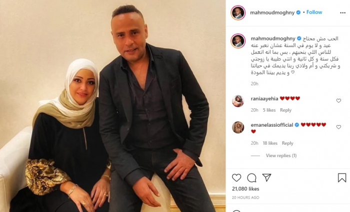 شارك الفنان محمود عبدالمغني، متابعيه عبر السوشيال ميديا، احتفاله بعيد الحب مع زوجته.