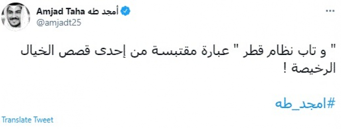 وقال في تغريدة عبر "تويتر" رصدها "المشهد العربي": "و تاب نظام قطر.. عبارة مقتبسة من إحدى قصص الخيال الرخيصة" – في إشارة لاستمرار سياسة قطر-.