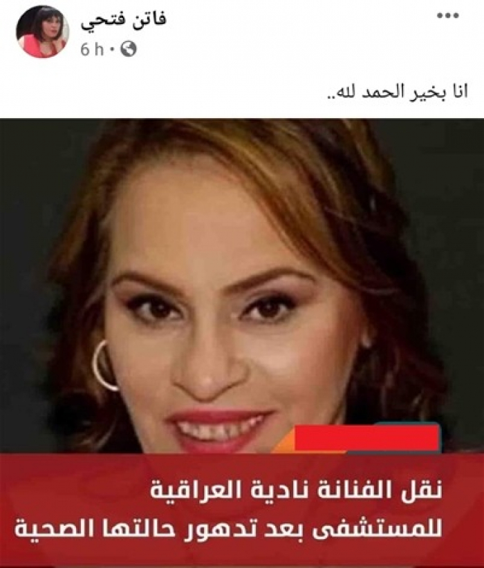 نفت الفنانة نادية العراقية حقيقة ما تم تداوله من أخبار تفيد مرضها.