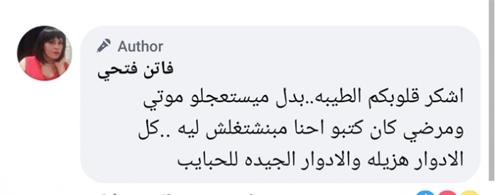 وأضافت الفنانة في تعليق على ما كتبته: "أشكر قلوبكم الطيبة.. بدل ما يستعجلوا موتي ومرضي كان كتبوا إحنا ما بنشتغلش ليه.. كل الأدوار هزيلة والأدوار الجيدة للحبايب".