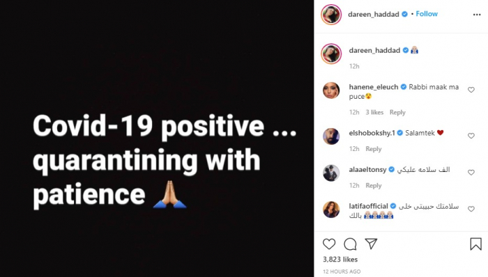 ونشرت دارين منشورًا، عبر حسابها على موقع " انستجرام": "إيجابى كورونا.. الصبر في الحجر الصحي".