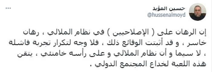 استنكر الناشط السياسي حسين المؤيد محاولات الرهان على الإصلاحيين في صفوف نظام الملالي، مؤكدا انه رهان خاسر.