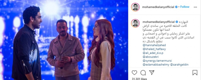 ونشر"كيلاني" صورة من كواليس التصوير عبر حسابه على إنستجرام، وعلق: "النهاردة كانت الحلقة الأخيرة من ساندي كراش.. أتمنى إنها تكون عجبتكوا".