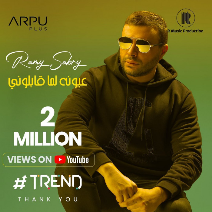 احتفل الفنان رامي صبري بتحقيق أغنيته الجديدة "عيونه لما قابلوني" 2 مليون مشاهدة بعد أسبوع من طرحها عبر موقع "يوتيوب".