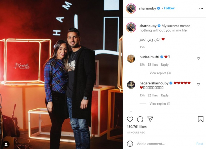 الشرنوبي نشر صورة تجمعه بزوجته معلقا "نجاحي لا يعني شيئا بدون وجودك في حياتي، أنتي وش الخير".