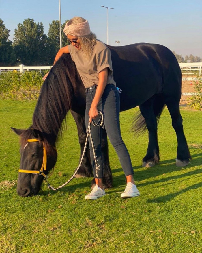 وظهرت "مايا"، في الصور بإطلالة كاجوال رفقة "حصان"، ونالت الصور إعجاب جمهورها.