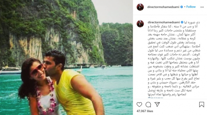ونشر سامي صورة له مع مي عبر حسابه بموقع "إنستجرام"، وعلّق: "دي صورة ليّا أنا ومي من 11 سنة، كنا بنفكر في أحلامنا ومستقبلنا وبنتمنى حاجات كتير، ربنا ادانا أكتر منها كمان، عشان حاجة مهمة بعد كرمه وعطاءه، عشان بجد بنحب بعض وبنساعد بعض طول الوقت في تحقيق أحلامنا".
