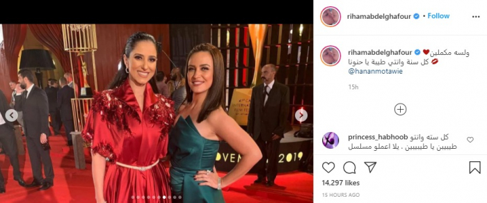 ريهام عبد الغفور تهنئ حنان مطاوع بعيد ميلادها