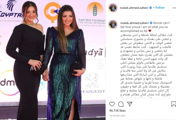 نشرت ملك صورة تجمعهما، وأخرى لـ"ليلى"، عبر حسابها الرسمي بموقع "إنستجرام"، علقت :" الكلمات لا تصف كم أنا فخورة بما حققتي حتى الآن".