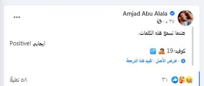 وكشف أمجد عن إصابته عبر صفحته في موقع فيس بوك، وكتب "عندما تسمع هذه الكلمات..إيجابي ..positive ..كوفيد19".