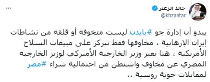 وأوضح في تغريدة على حسابه بموقع التدوين المصغر تويتر، اليوم أنه: "يبدو أن إدارة جو بايدن ليست متخوفة أو قلقة من نشاطات إيران الإرهابية".