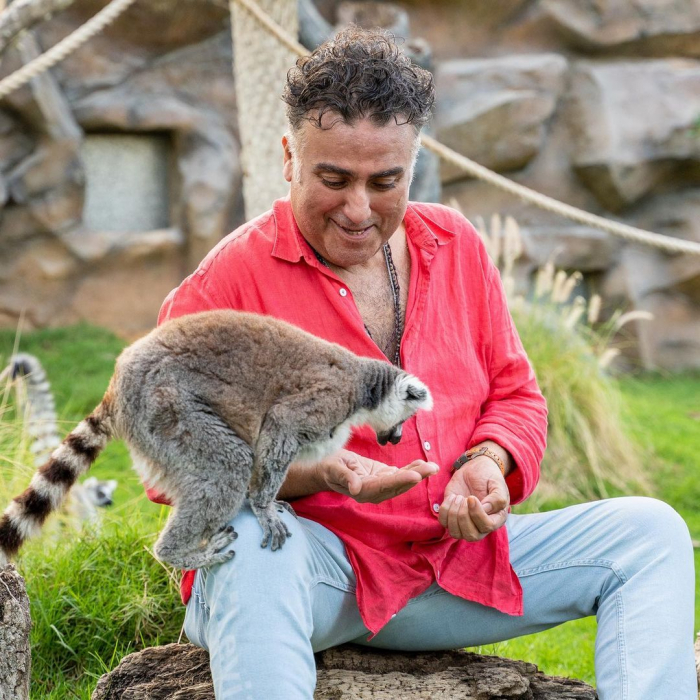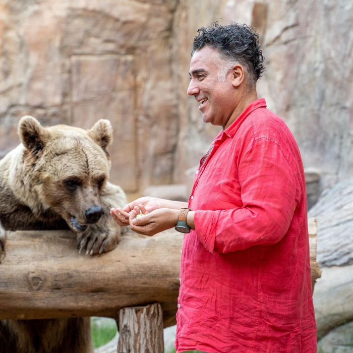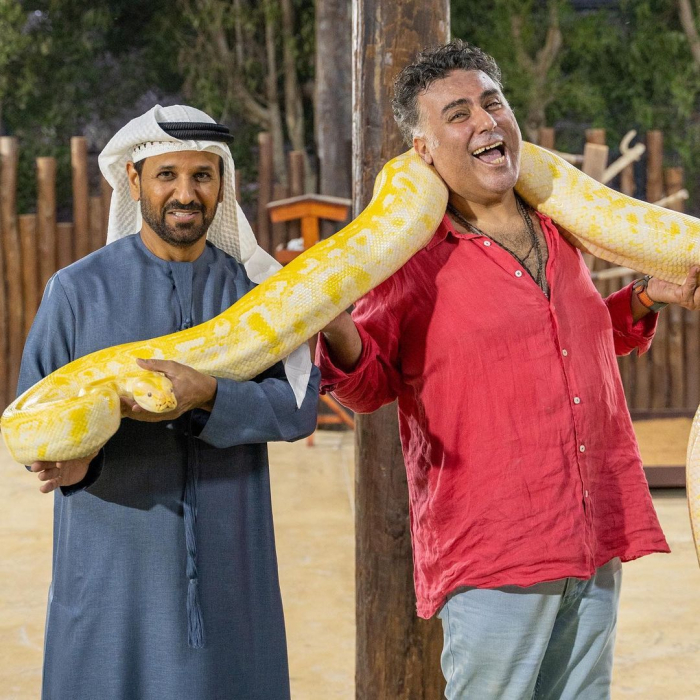 ظهر السيناريست تامر حبيب وهو يحمل ثعبانا ضخما ويداعب قردا خلال تواجده في دبي، عبر حسابه على إنستجرام.