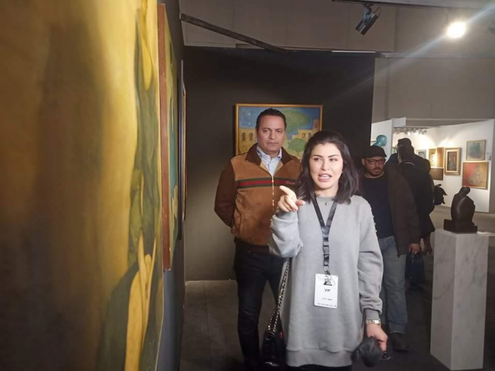 تفقدت الفنانة السورية جومانا مراد، الجناح الخاص بها في الدورة الثانية من معرض مصر الدولي للفنون "إيجيبت آرت فير" للفنون التشكيلية، الذي انطلق ظهر الجمعة، بأحد فنادق القاهرة الجديدة.