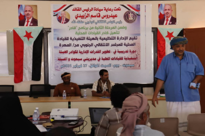 تلقت كوادر الهيئتين التنفيذتين للمجلس الانتقالي الجنوبي بمديريتي سيحوت والمسيلة، اليوم السبت دورة تدريبية على تطوير القدرات الإدارية.