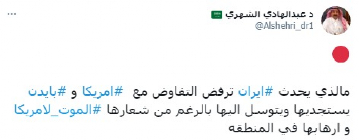 الشهري: إيران ترفض التفاوض وأمريكا تتوسل للملالي