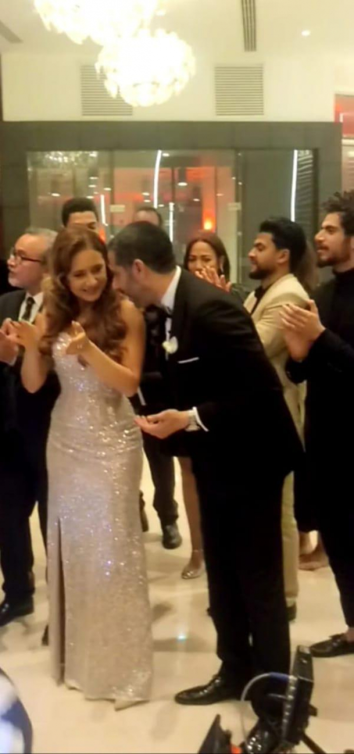 وتظهر نيللي في الصورة وإلى جوارها النجم محمد فراج والذي يجسد دور زوجها خلال أحداث المسلسل، وهما في حفل زفاف.