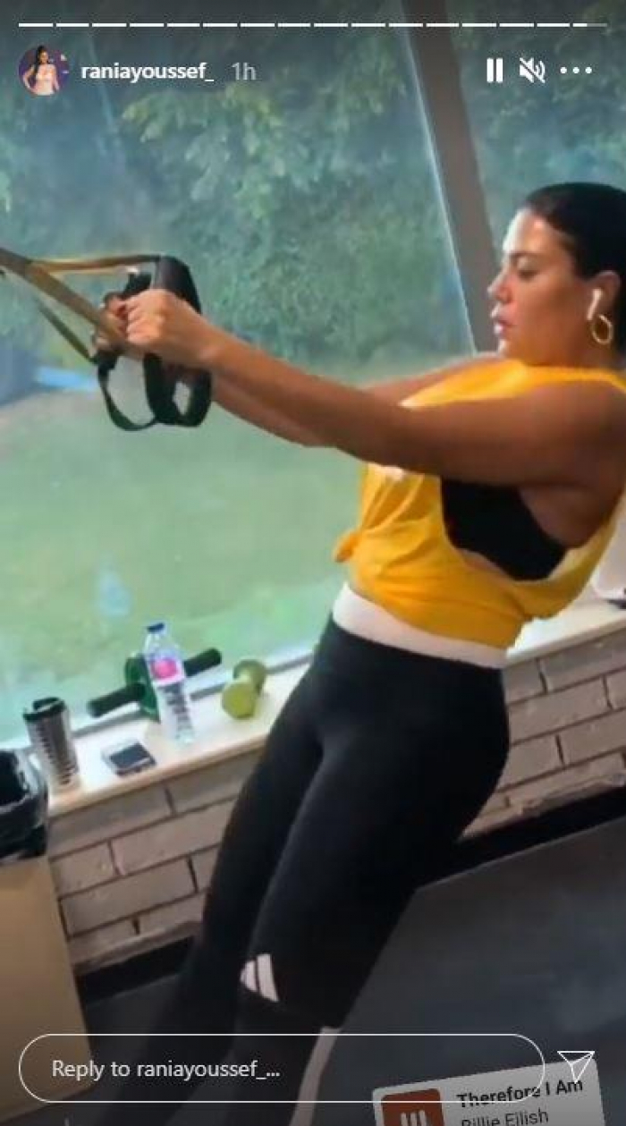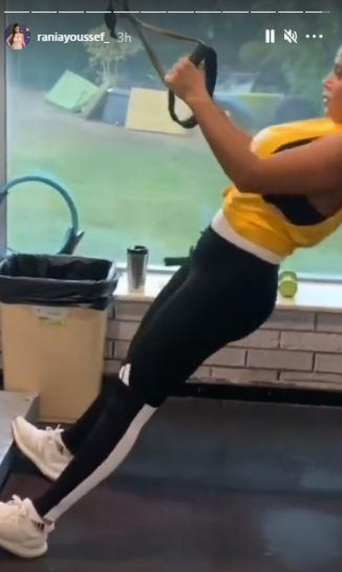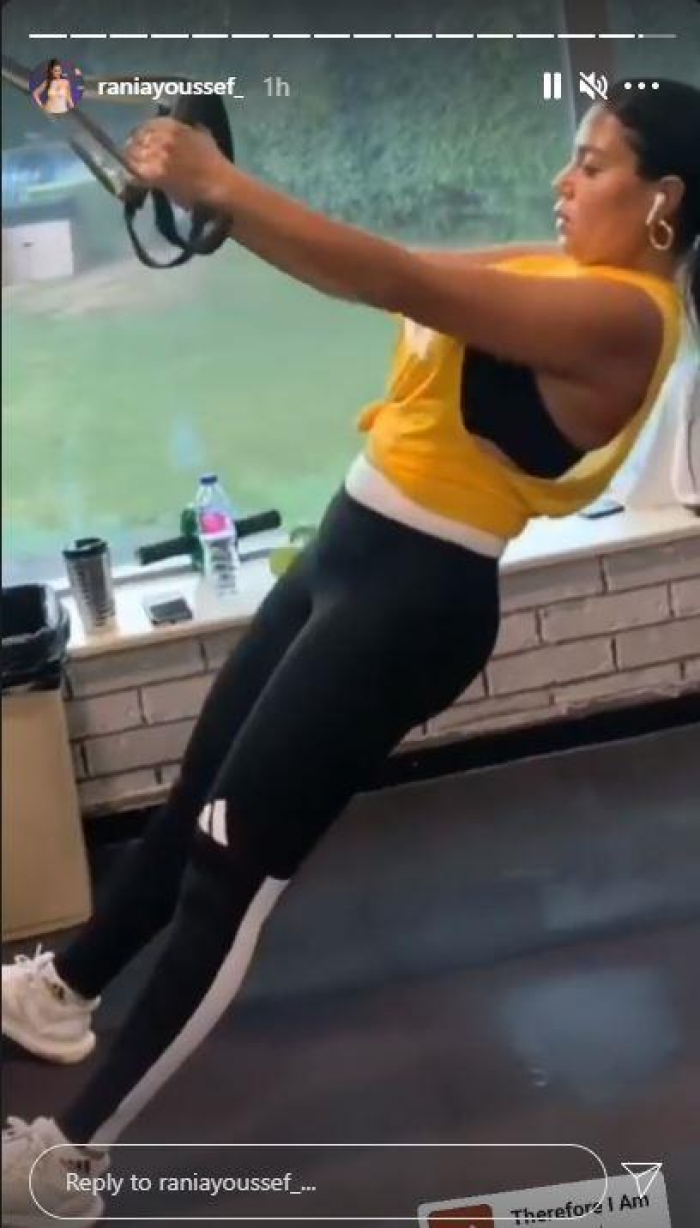 وظهرت "رانيا"، في الفيديو وهي تؤدي بعض التمارين الرياضية في الجيم، مرتدية ملابس رياضية.