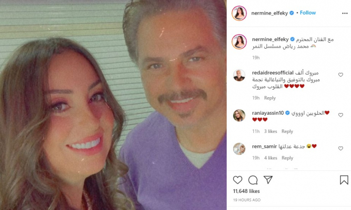 وظهرت "نرمين"، في الصورة رفقة الفنان محمد رياض وعلقت على الصورة قائلة: "مع الفنان المحترم محمد رياض مسلسل النمر".