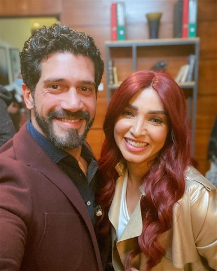 ونشر الفنان أحمد مجدي الذي يشارك في بطولة المسلسل صورته مع روجينا وظهرت بشعر أحمر طويل.