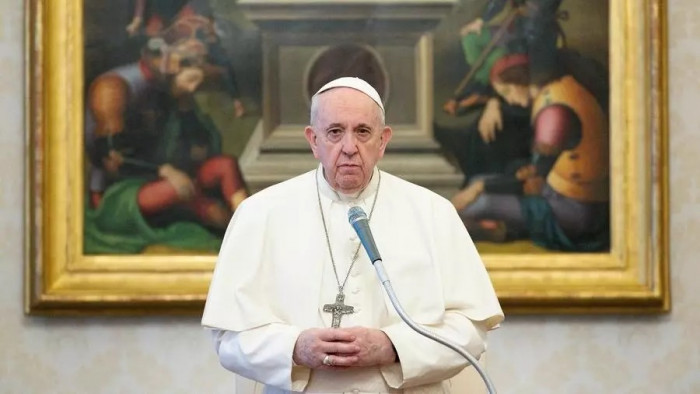 بابا الفاتيكان يُقبل العلم العراقي (صورة)