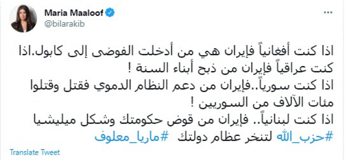 كشفت الإعلامية اللبنانية ماريا معلوف، اليوم، تفاصيل جرائم إيران في المنطقة العربية.