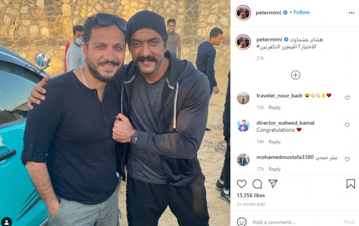 نشر بيتر ميمي، صورة من كواليس العمل، عبر حسابه الرسمي بموقع "إنستجرام".