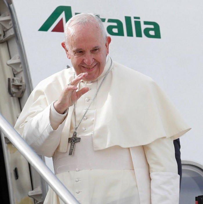 بعث البابا فرنسيس بابا الفاتيكان برسالة أثناء مغادرته الأجواء العراقية، اليوم الإثنين، وتم إيصالها من خلال قائد رحلة الطائرة على لسانه عن طريق مركز المراقبة الجوية في بغداد.