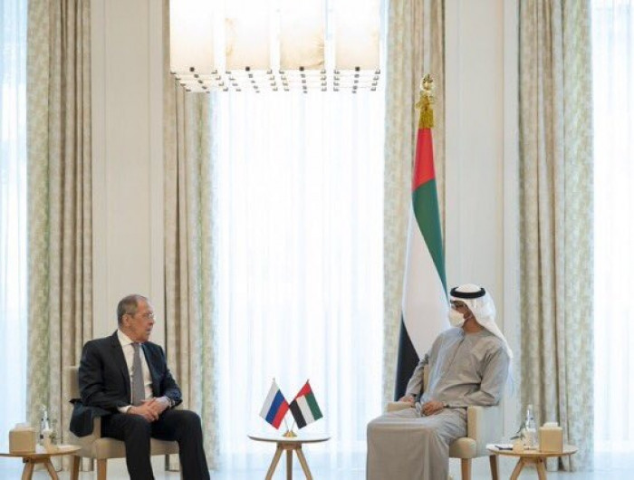 استقبل ولي عهد أبوظبي نائب القائد الأعلى للقوات المسلحة الإماراتية، الشيخ محمد بن زايد آل نهيان، وزير خارجية روسيا سيرجي لافروف، في قصر الشاطئ في أبوظبي، خلال زيارته إلى دولة الإمارات.