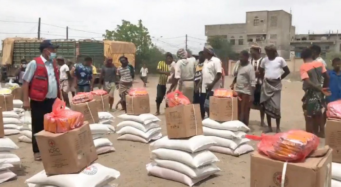وزعت اللجنة الدولية للصليب الأحمر، سلات غذائية في منطقة بيت الفقيه بمحافظة الحديدة.