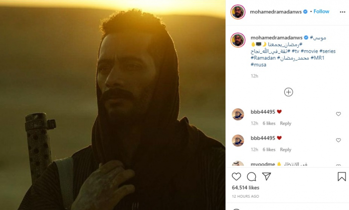 نشر الفنان محمد رمضان صورة من كواليس مسلسل "موسى"، عبر حسابه الرسمي بموقع "إنستجرام".