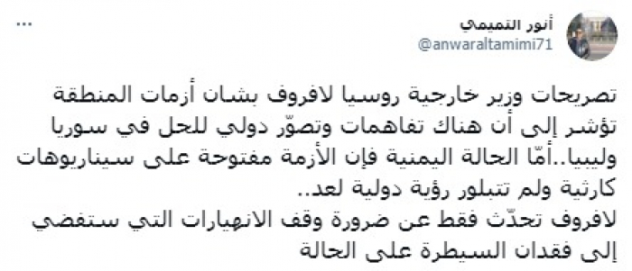 التميمي: الأزمة اليمنية أمام سيناريوهات كارثية
