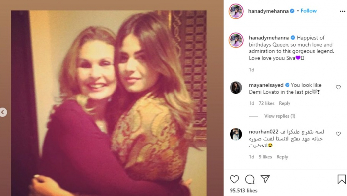 ونشرت "هنادي" صورًا تجمعهما، عبر حسابها الرسمي بموقع "إنستجرام"، وعلقت: "أسعد عيد ميلاد الملكة، الكثير من الحب والإعجاب للأسطورة، أحبك سيفا".
