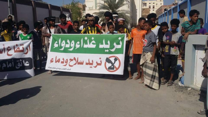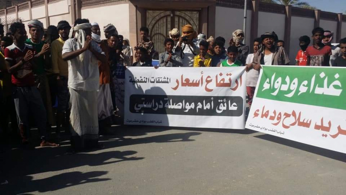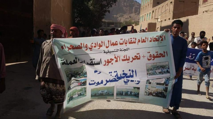 وانطلقت مسيرة شعبية من أمام السدة القبلية بحي السحيل، إلى مقر فرع شركة النفط بالوادي والصحراء، قبل اتجاهها إلى ساحة قصر سيئون.