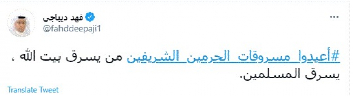 ديباجي يتفاعل مع هاشتاج أعيدوا مسروقات الحرمين الشريفين