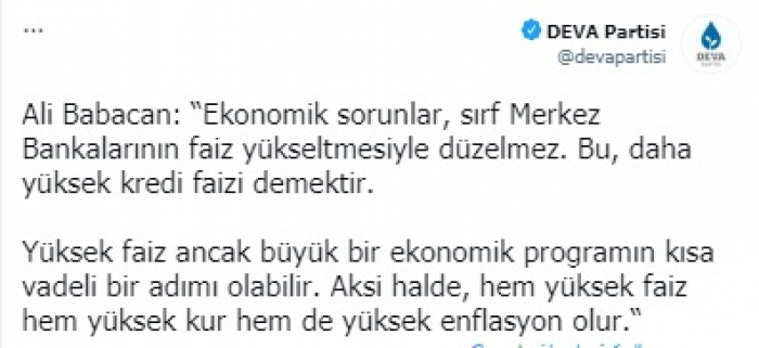 هاجم رئيس حزب ديفا التركي المعارض علي باباجان، الرئيس رجب طيب أردوغان، لقرار رفع أسعار الفائدة.