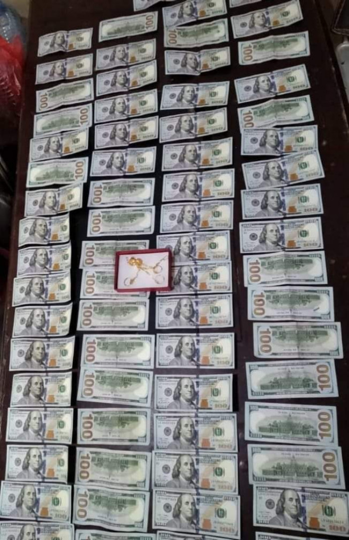 وتوصلت التحريات الأمنية، إلى المتهم الرئيسي بالواقعة حيث عُثر بحوزته على مبالغ مالية تقدر بـ 7300 دولار، بالإضافة إلى مصوغات ذهبية.