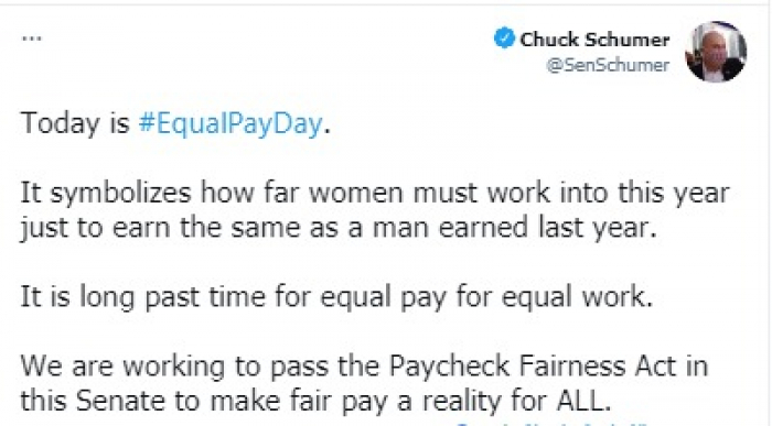 وقال في تغريدة على حسابه بموقع التدوين المصغر تويتر، اليوم إنه: "يوم المساواة في الأجور يرمز إلى المدى الذي يجب أن تعمل فيه المرأة هذا العام فقط لكسب نفس ما كسبه الرجل العام الماضي".