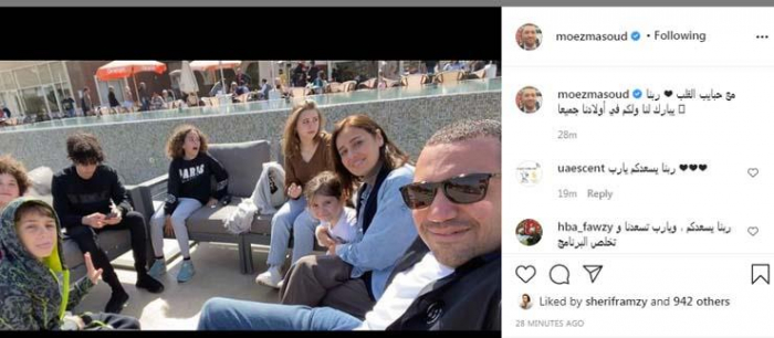 وظهر الثنائي في الصورة رفقة أبنائهم، علق :"مع حبايب القلب، ربنا يبارك لنا ولكم في أولادنا جميعًا".