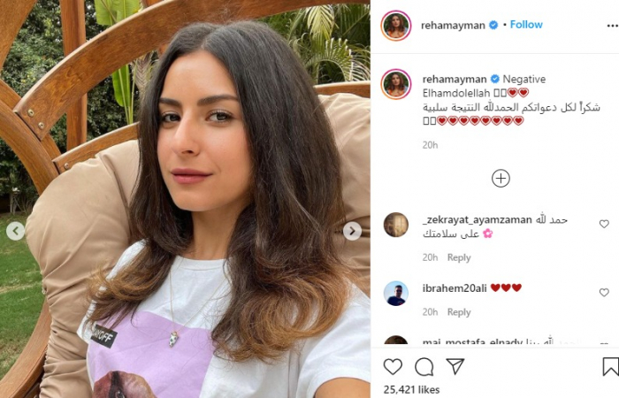 ونشرت ريهام صورًا لها، عبر حسابها الرسمي بموقع "إنستجرام"، وعلقت: "سلبي، شكرا لكل دعواتكم الحمدلله النتيجة سلبية".