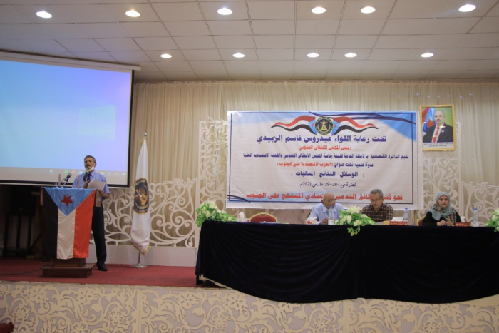 أنهت الدائرة الاقتصادية بالأمانة العامة للمجلس الانتقالي الجنوبي، اليوم الاثنين، فعاليات الندوة العلمية التي أقيمت تحت عنوان (الحرب الاقتصادية على الجنوب .. الوسائل والنتائج والمعالجات).