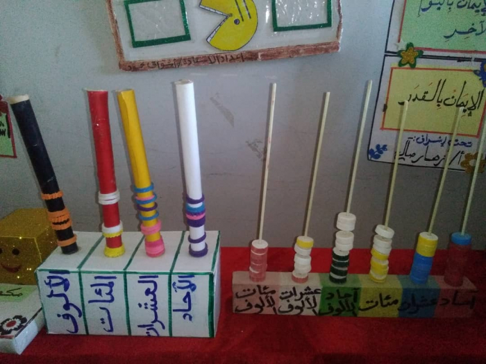 واشتمل المعرض، على مختلف الوسائل التعليمية بجميع المواد الدراسية، بمساعدة المعلمات.